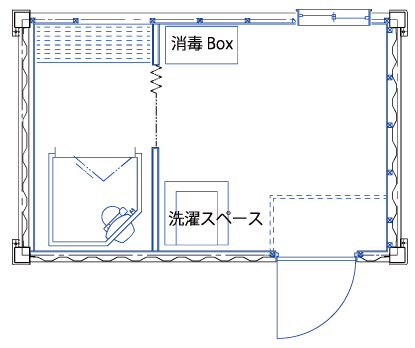 洗濯スペース、消毒BOX
